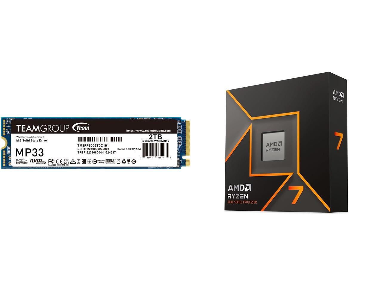 Team Group MP33 M.2 2280 2TB PCIe 3.0 x4 with NVMe 1.3 3D NAND Internal Solid State Drive (SSD) TM8FP6002T0C101 AMD Ryzen 7 9700X - Ryzen 7 9000 Series Granite Ridge (Zen 5) 8-Core 3.8 GHz - Socket AM5 65W - Radeon Graphics Processor - 100-