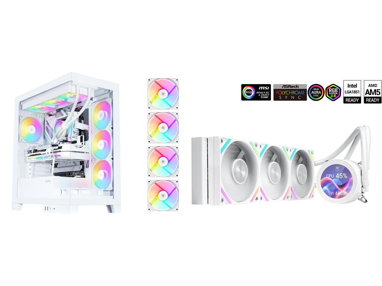 SAMA Q70 White CPU Liquid Cooler, 360MM Liquid Water AIO CPU Cooler with 2.8" LCD Display, Magnetic Detachable, XT120 Modular Fans LCP Blade, Bonus Stands, 115X, 2011, 1200, 1700, AM4, AM5 AIO Cooler