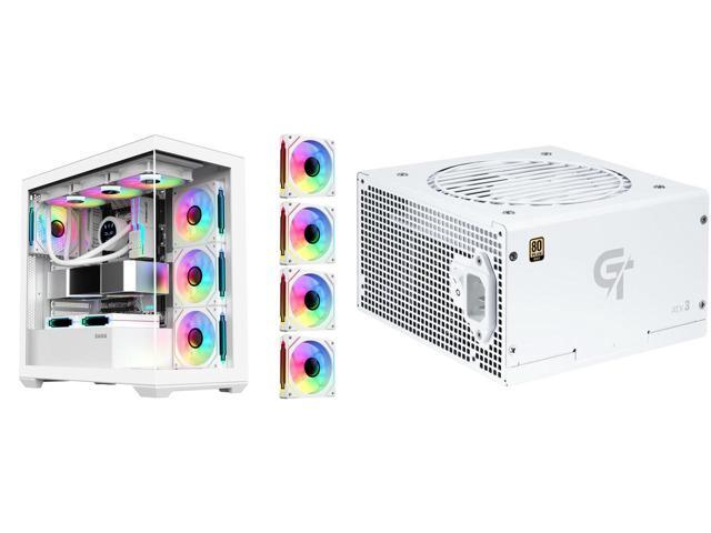 SAMA SV01 Gaming PC Case Computer Mid Tower ATX Case White with 4 Addressable RGB Fans Pre-Installed, Back Plug Motherboard Design, Tempered Glass Transparent Side Panel and 1 x SAMA GT750WH White 80 PLUS Gold Fully Modular ATX Power Supply - ATX 3.1 & PCIe 5.1 Compliant - Japanese Capacitors - FDB Fan with Auto Speed Control - 5 Year Warranty