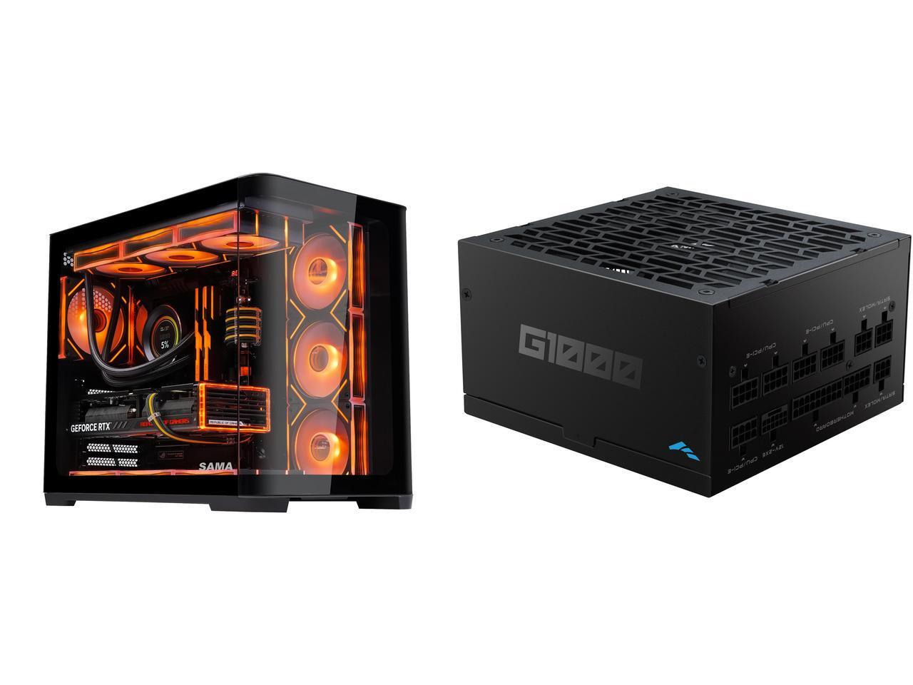 SAMA 2851 ATX Mid-Tower PC Gaming Case, High-Airflow, Sturdy Curved Tempered Glass Front, 4 ARGB PWM Fan Pre-installed with Fan Hub, Black and 1 x SAMA G1000W ATX 3.1 Power Supply, 1000W, Cybenetics Gold Standards, PCIe 5.1 Ready, Full Modular, Japanese Capacitors, FDB Fan, Black Version