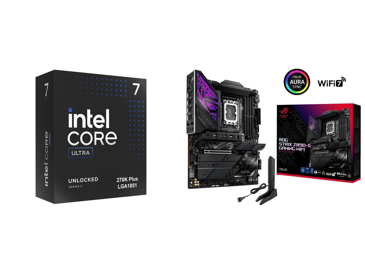 Intel Core Ultra 7 270K Plus Processor 24 cores (8 P-cores + 16 E-cores) up to 5.5 GHz BX80768270K ASUS ROG STRIX Z890-E GAMING WIFI Intel® Z890 LGA 1851 ATX motherboard, Advanced AI PC-ready, 18+2+1+2 stages, DDR5, WiFi 7, 7x M.2, Thunderb