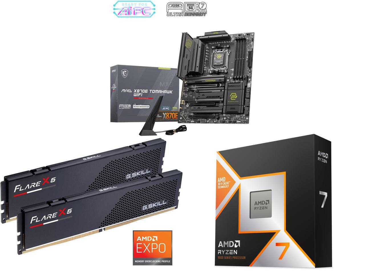 The MAG X870E TOMAHAWK WIFI motherboard supports AMD Ryzen 9000 / 8000 / 7000 Series processors.