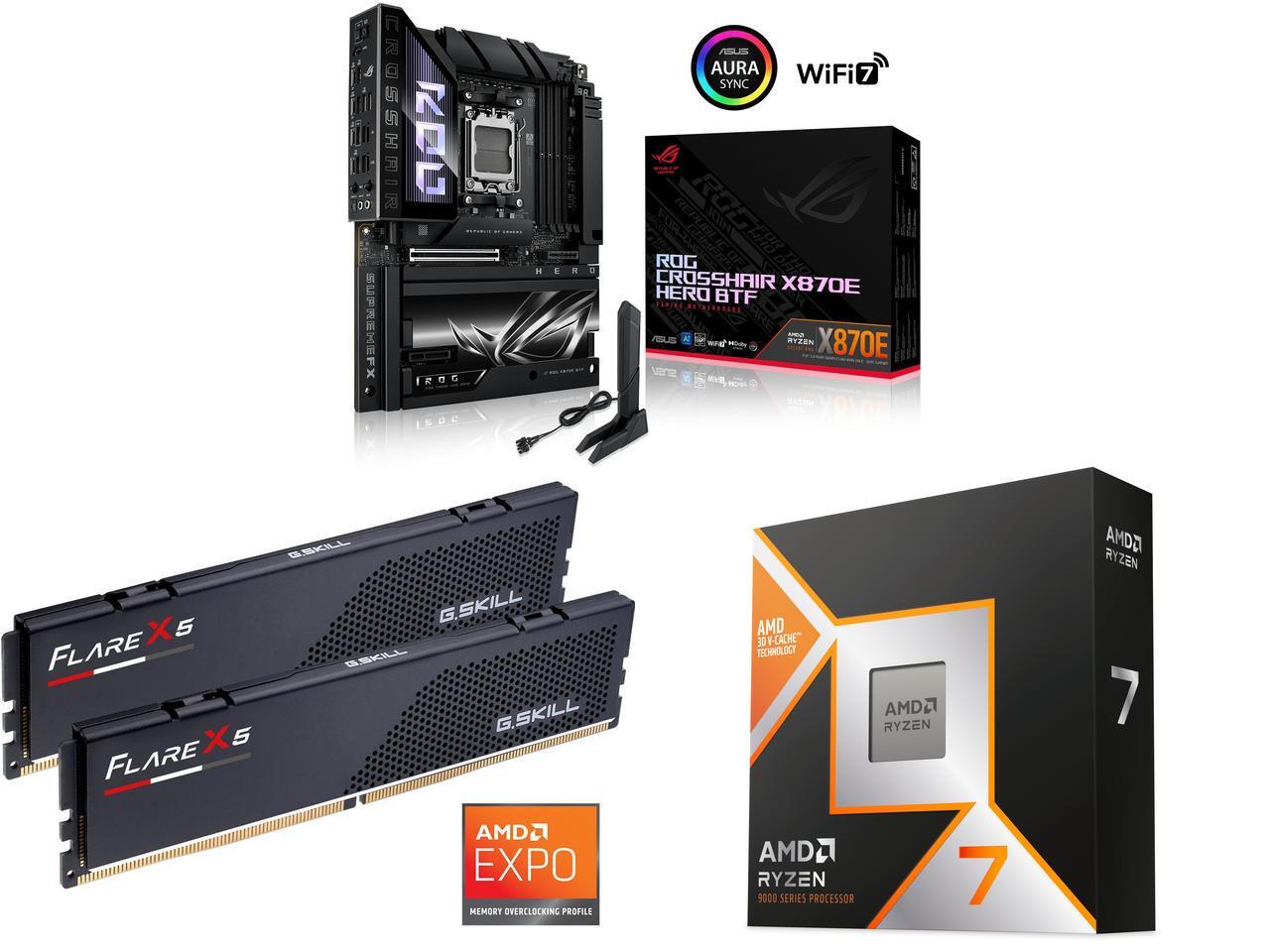ASUS ROG CROSSHAIR X870E HERO BTF AMD X870E ATX Board with Hidden-connector Design and High-power GPU Slot for Clean Cable Management, 18+2+2 Power, DDR5, WiFi 7, 5x M.2, PCIe 5.0, USB4 G.SKILL Flare X5 Series AMD EXPO 32GB (2 x 16GB) 288-P