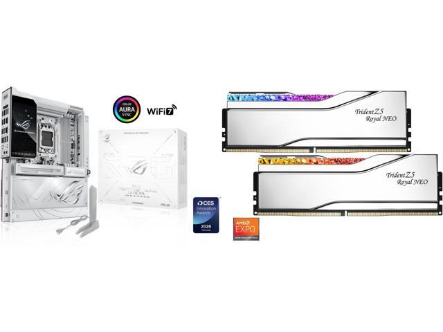 The ROG X870E Glacial is a flagship motherboard engineered for uncompromising performance and sophisticated AI. It boasts a robust 24+2+2 power stage design, Dynamic OC Switcher, and Core Flex for next-generation overclocking control. Meanwhile, advanced memory tuning is unlocked through server-grade DRAM enhancement and NitroPath DRAM technology, and storage scales with support for up to seven M.2 drives. Top-tier connectivity includes two 10G Ethernet ports, two USB4® ports, and two USB 20Gbps Type-C® front-panel connectors. This motherboard also features a 3D VC M.2 heatsink and a 5-inch LCD display, along with AI Cache Boost and AI Advisor for smarter, more intuitive system tuning.