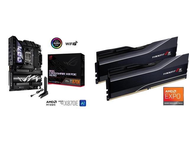 The AI PC-ready ROG Crosshair X870E Hero offers unyielding power delivery, robust thermal management, hyperspeed connectivity, comprehensive PCIE 5.0 and DDR5 support to unleash the performance of AMD Ryzen 9000 Series processors. Dark hues predominate across this motherboard, drawing your attention to premium metallic textures, nickel-plated surfaces, sleek contours and a stereoscopic visual effect on the large M.2 and chipset heatsink. This board also features the Polymo Lighting II effect. This upgraded lighting module built into the I/O shroud provides more dynamic RGB illumination for the signature ROG logo.