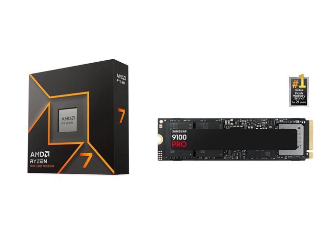 AMD Ryzen 7 9700X - Ryzen 7 9000 Series Granite Ridge (Zen 5) 8-Core 3.8 GHz - Socket AM5 65W - Radeon Graphics Processor - 100-100001404WOF SAMSUNG SSD 9100 PRO 2TB, PCIe 5.0x4 M.2 2280, Seq. Read Speeds Up to 14,800MB/s, Best for AI Compu