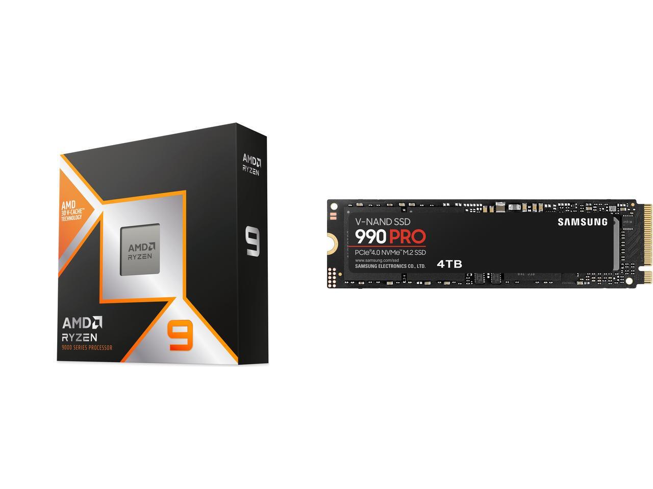 AMD Ryzen 9 9900X3D - Ryzen 9 9000 Series Granite Ridge (Zen 5) 12-Core 4.4 GHz Socket AM5 120W AMD Radeon Graphics Processor - 100-100001368WOF SAMSUNG 990 PRO SSD 4TB PCIe 4.0 M.2 2280 Internal Solid State Hard Drive, Seq. Read Speeds Up