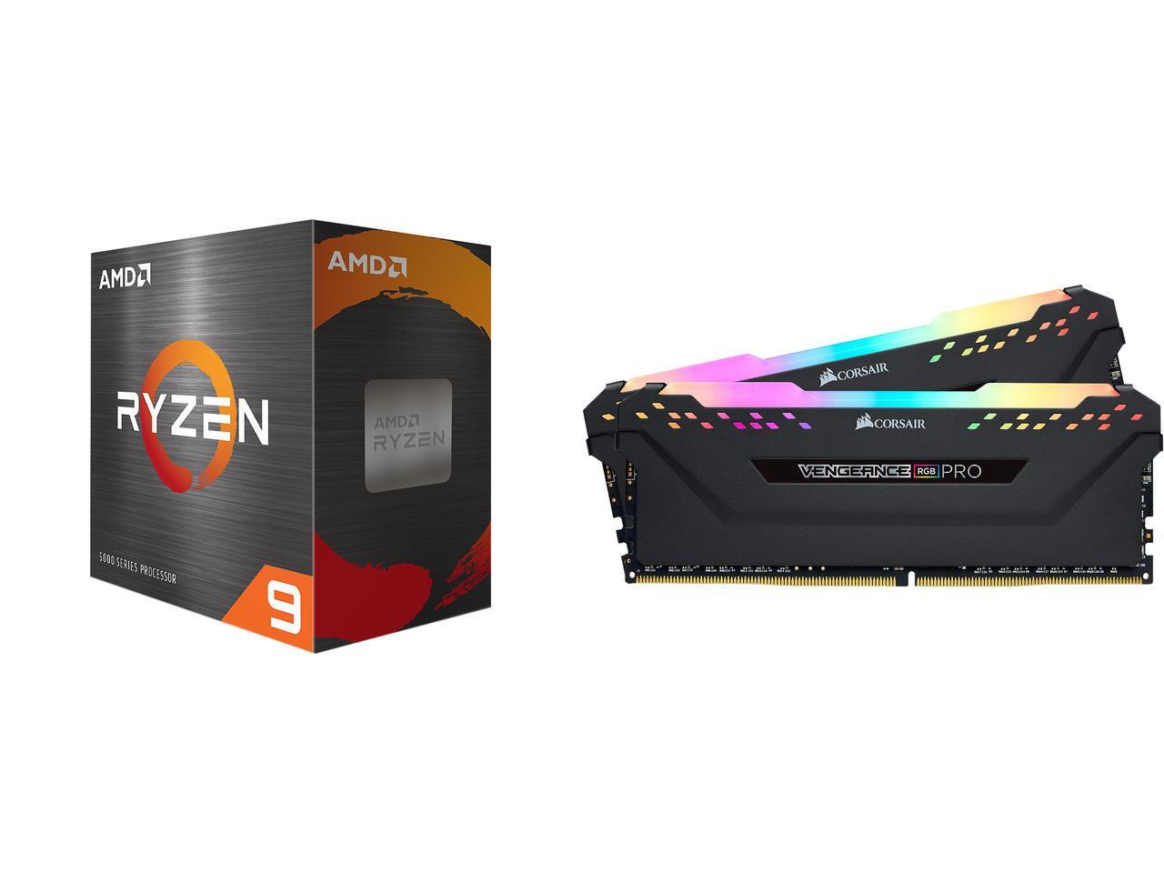 AMD Ryzen 9 5900XT - Ryzen 9 5000 Series Vermeer (Zen 3) 16-Core 3.3 GHz Socket AM4 105W None Integrated Graphics Desktop CPU Processor - 100-100001581WOF CORSAIR Vengeance RGB Pro 32GB (2 x 16GB) 288-Pin PC RAM DDR4 3200 (PC4 25600) Deskto
