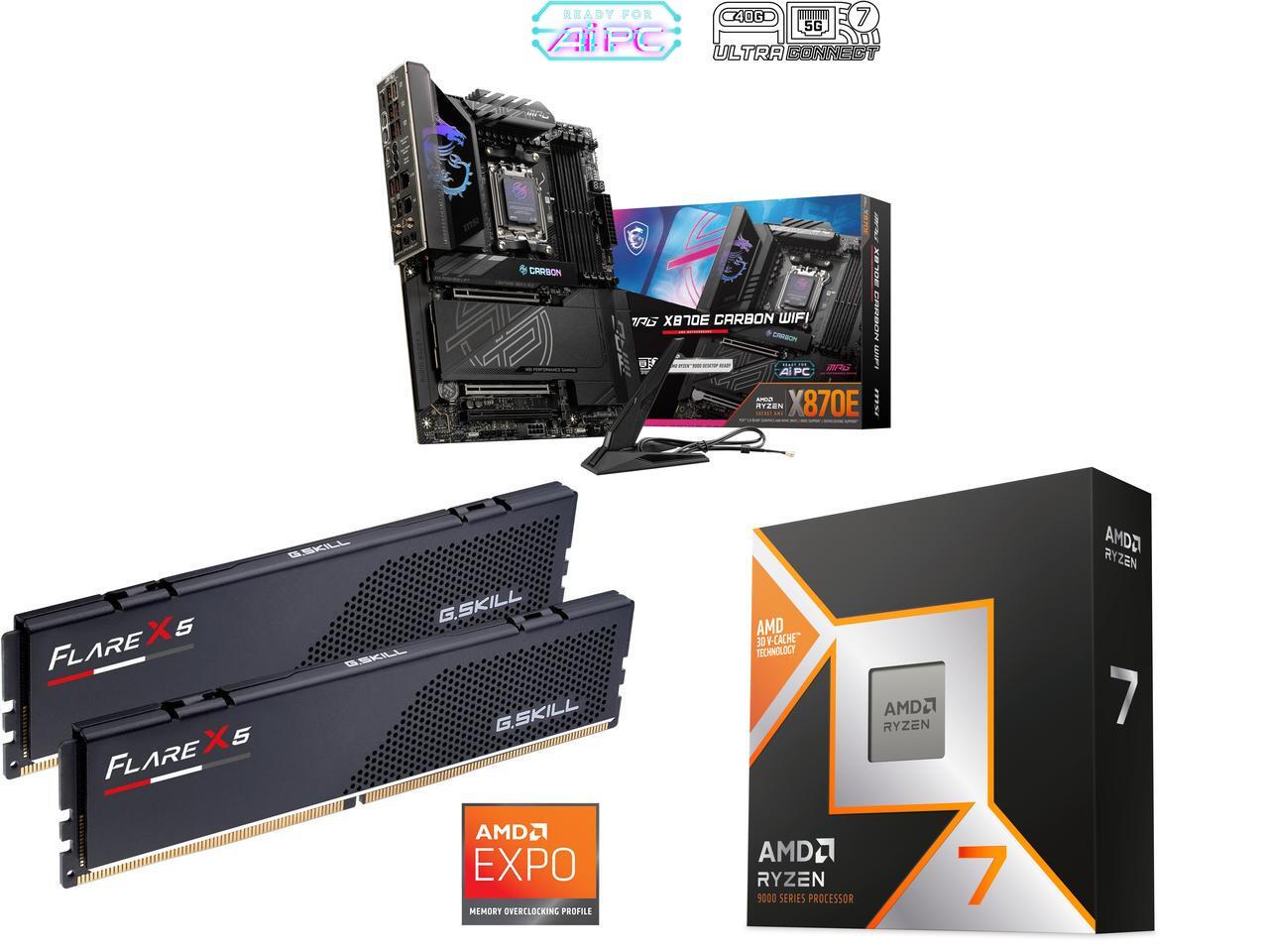 The MPG X870E CARBON WIFI motherboard supports AMD Ryzen 9000 / 8000 / 7000 Series processors.
