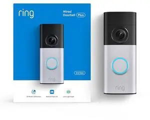Ring Wired Doorbell Plus (Newest Model) Retinal 2K with wide-angle video, 4x Enhanced Zoom, and Low-Light Sight, Nickel Silver