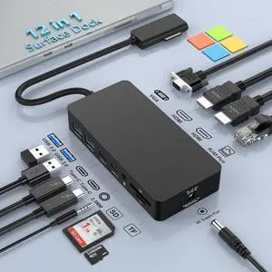 New Microsoft Surface Dock Triple Displays Dual HDMI+VGA with Power Adapter,12 in 1 Surface Docking Station for Microsoft Surface Pro 11/10/9/8/X/7/6/5/4/3,Surface Laptop 7/6/5/4/3/2/1,Surface Book Go