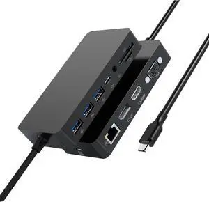Ms USB C Dock Triple Display (4K DP+HDMI+VGA), 12 in 1 USB C Docking Station with Gigabit Ethernet, 4K HDMI VGA DP Display, 3xUSB 3.0, Audio Out, 100W PD, SD/TF Combo Dock