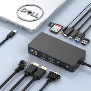 New Docking Station Dual HDMI+VGA with Power Adapter Compatible with XPS, Inspiron, Latitude, Precision, Vostro,G/Alienware, etc