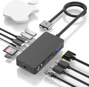 MacBook Pro Docking Station Triple Displays Dual HDMI+VGA, 12 in 2 MacBook Pro Air Docking Station,Multi Monitors for MacBook Pro/Air with Intel Chips, USB C Multi Card Reader Hub