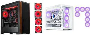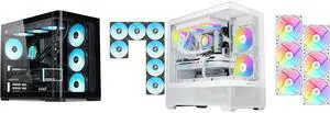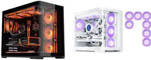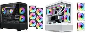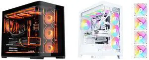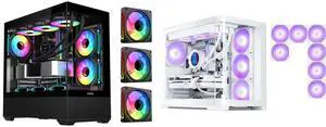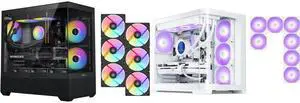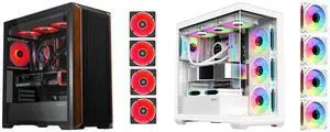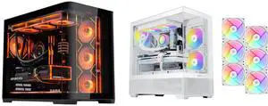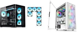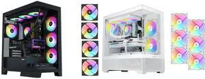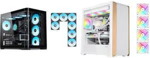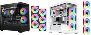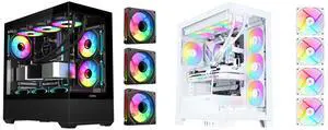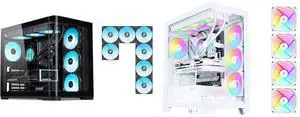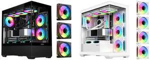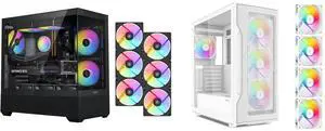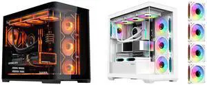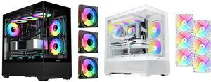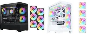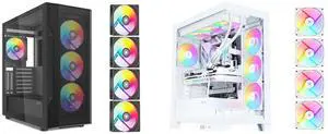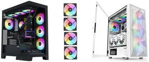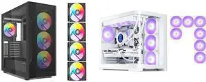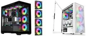 SAMA V60 PC Case, Mid-Tower Computer Case, A Curved Tempered Glass, 7 Pre-Installed ARGB PWM Fans and Fan Hub, USB Type-C, ATX/MATX/ITX Back-Connect Support, 360mm Liquid Cooler Compatible, Black and SAMA V40 White ATX Mid Tower PC Case, 6 Pre-Installed 120mm ARGB PWM Fans, Dual Tempered Glass Panels, Vertical Airflow Design, Gaming Computer Case for ATX/Micro-ATX/ITX Motherboard - $219.98