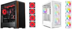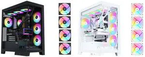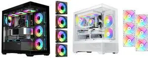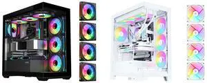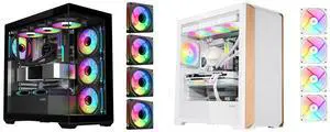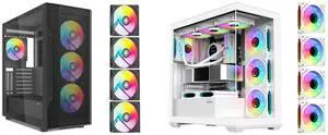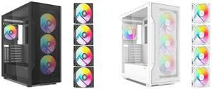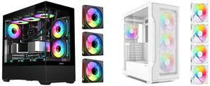 SAMA 2851 ATX Mid-Tower PC Gaming Case, High-Airflow, Sturdy Curved Tempered Glass Front, 4 ARGB PWM Fan Pre-installed with Fan Hub, Black and SAMA V60 PC Case, Mid-Tower Computer Case, A Curved Tempered Glass, 7 Pre-Installed ARGB PWM Fans and Fan Hub, USB Type-C, ATX/MATX/ITX Back-Connect Support, 360mm Liquid Cooler Compatible, White - $229.98