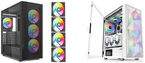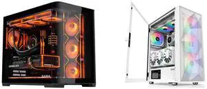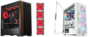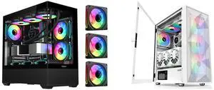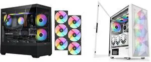 SAMA V40 Black ATX Mid Tower PC Case, 6 Pre-Installed 120mm ARGB PWM Fans, Dual Tempered Glass Panels, Vertical Airflow Design, USB Type-C Port, Gaming Computer Case for ATX/Micro-ATX/ITX Motherboard and SAMA Z60 White Genuine Walnut Wood PC Case, ATX Mid Tower, Pre-Installed 4x 140mm ARGB PWM Fans, Supports 360mm Radiator on Top, Type-C Port, Supports E-ATX/ATX/M-ATX/ITX, Gaming Case - $214.98