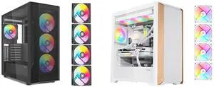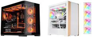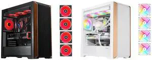 SAMA 2851 ATX Mid-Tower PC Gaming Case, High-Airflow, Sturdy Curved Tempered Glass Front, 4 ARGB PWM Fan Pre-installed with Fan Hub, Black and SAMA Z60 White Genuine Walnut Wood PC Case, ATX Mid Tower, Pre-Installed 4x 140mm ARGB PWM Fans, Supports 360mm Radiator on Top, Type-C Port, Supports E-ATX/ATX/M-ATX/ITX, Gaming Case - $224.98