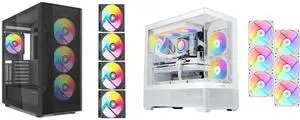 SAMA Z60 Black Genuine Walnut Wood PC Case, ATX Mid Tower, Pre-Installed 4x 140mm ARGB PWM Fans, Supports 360mm Radiator on Top, Type-C Port, Supports E-ATX/ATX/M-ATX/ITX, Full Tower Computer Case and SAMA V40 White ATX Mid Tower PC Case, 6 Pre-Installed 120mm ARGB PWM Fans, Dual Tempered Glass Panels, Vertical Airflow Design, Gaming Computer Case for ATX/Micro-ATX/ITX Motherboard - $219.98