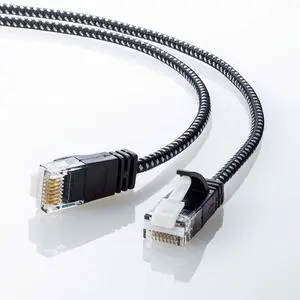 Sanwa Supply KB-T6AME-10BKW CAT6A Thin Diameter Mesh LAN Cable (32.8 ft (10 m) 10Gbps/500MHz RJ45 Anti-Crack Black & White