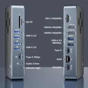 DisplayLink Docking Station with Dual Display, 2 HDMI Ports and 1 DisplayPort for Double 4K Display, Laptop 15 in 1 Docking Station with 100W PD Charging, SD/TF, 1 USB-C, 6 USB-A Ports, 3.5mm Audio