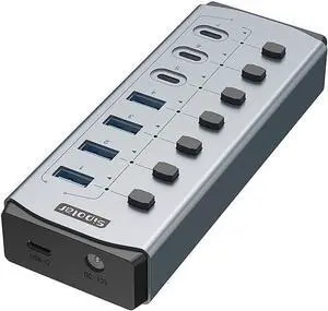 36W 7 Ports USB 3.0 hub with Individual on/Off Switches,Durable Aluminum 4 Ports USB-A+3 Ports USB-C,Charging and 5Gbps Data hub for Laptop,PC,MacBook