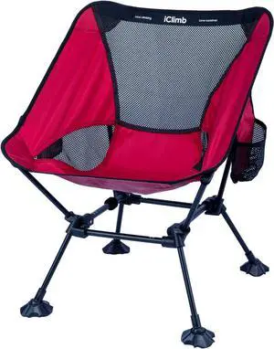 iClimb- Ultralight Compact Camping Folding Beach Chair with Anti Sinking Large Feet and Back Support Webbing (Red Square Frame 2Pc)