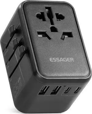 Universal Travel Adapter 65W GaN, International Travel Plug AC2500W Charger with 3USB-C PD & 2USB-A QC for US EU UK AUS Worldwide Converter for Laptops Tablets Phones
