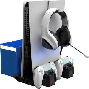 Surge Multi-Function Charging Stand for PlayStation 5, PS5 Slim, Digital and Disc Version with Cooling Fans, 2 Charge Docks for DualSense & DualSense Edge Controllers, Headset Hook and Game Storage