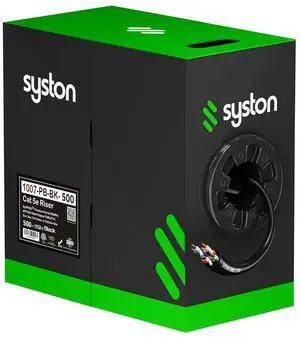 Syston Cable Technology Cat 5e Ethernet Network Cable -500 ft350MHz 24AWG Solid Bare Copper Wire Outdoor/Indoor, Bulk No Ends 10 Ft to 1000 Ft Available, Heat Resistant Riser Rated - CMR