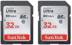 SanDisk Ultra 32GB Class 10 SDHC UHS-I Memory Card Up to 80MB, 2 Pack (Card)