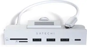 Satechi Aluminum Type-C Clamp Hub Pro with USB-C Data Port, USB-A 3.0 Data, Micro/SD Card Reader - Compatible with 2020/2019/2017 iMac & iMac Pro, Does Not Fit 2021 iMac (Silver)