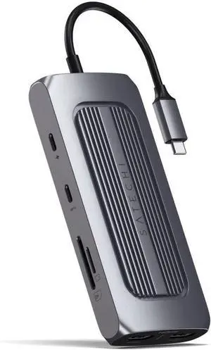 Satechi Type-C Dual Multimedia Adapter with Dual 4K HDMI, USB-C PD, Gigabit Ethernet, Micro/SD Card Readers, USB 3.0 - for M2/ M1 MacBook Pro/Max (Space Gray)