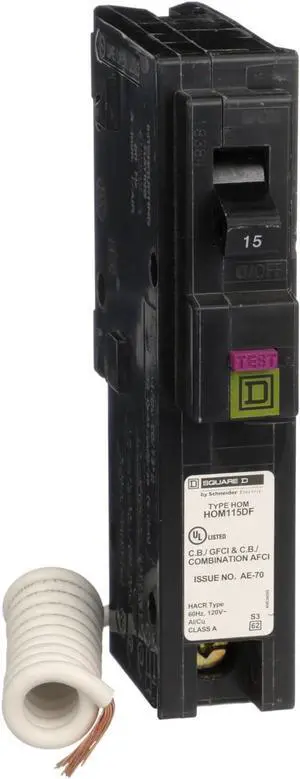 Square D by Schneider Electric HOM115DFC Homeline 15-Amp Single-Pole Dual Function Circuit Breaker, 1-Inch Format