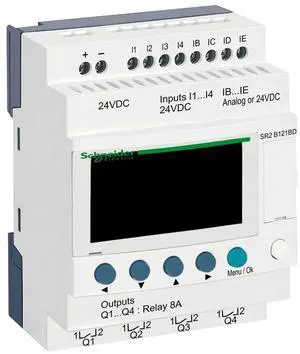 Schneider Electric - Zelio Logic SR2 Compact Smart Relay/Programmable Controller, 12 Inputs/Outputs, 24V DC, Integrated Clock Display, 4 Relay Outputs