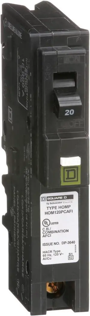 Square D by Schneider Electric HOM120PCAFIC Homeline Plug-On Neutral 20 Amp Single-Pole CAFCI Circuit Breaker,