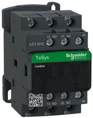 Schneider Electric - IEC TeSys Deca Contactor - LC1 Series, 3-Pole (3 NO), Non-reversing, 12A, AC-3/AC-3e, 7.5HP at 480VAC, Up to 100kA SCCR, 120VAC Coil, Open Style, DIN Rail Mountable