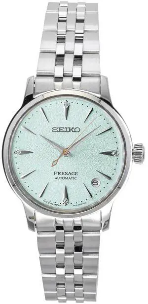 Seiko Presage Cocktail Diamond Accents Stainless Steel Mint Green Dial Automatic SRPL63J1 Women's Watch