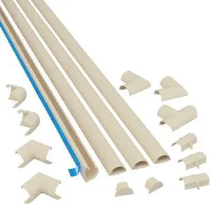 D-Line 13.12ft Cord Hider Kit, Patented Cable Cover, Hide Wires on Wall, Channel for TV Mount Cords, Raceway Wire Hiders, Paintable, Adhesive, Half Round, 4X 0.78in W x 0.39in H x 39in Lengths, Beige