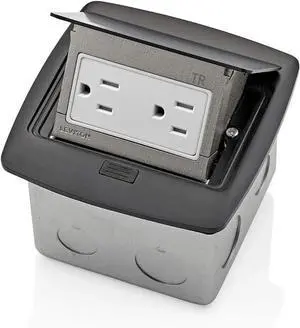 Leviton Pop-Up Floor Box with 15 Amp, Tamper-Resistant Receptacle, PFTR1-0MB, Black