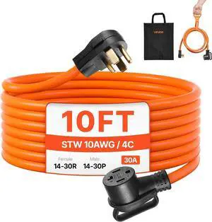 VEVOR 10 ft Dryer Extension Cord, 4-Prong NEMA 14-30P to 14-30R Dryer Cord, 125V/250V, STW 10AWG/4C, 30A, Pure Copper Wire Cable with Black Non-Woven Bag and PVC Cable Tie, for Outdoor & Indoor Use