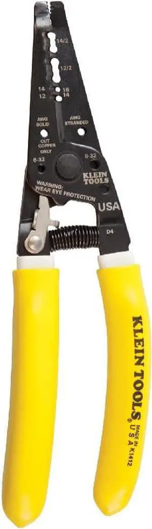 Klein Tools K1412 Wire Cutter / Stripper, Dual NM Cable Stripper and Cutter for Solid Copper, Strips 12 and 14 AWG