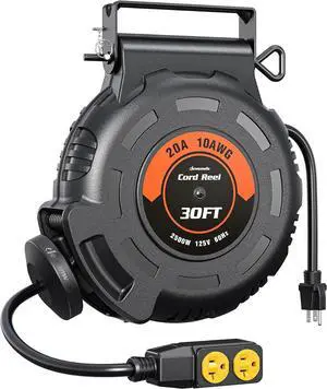 ReelWorks Retractable Extension Cord Reel Polypropylene 12AWG x 40' Foot Industrial Commercial Grade 3C SJT Cable Triple Tap Connector 15A 125VAC 1875W 60Hz Current Interrupter Best for Indoor Use
