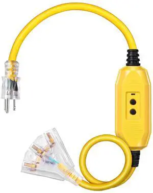 3 FT Outdoor GFCI Extension Cord Manual, 12/3 Gauge Extension Cord for Multiple Appliances, Heavy Duty Power Cable with LED Lighted 3 Prong Plug, Yellow, UL Listed