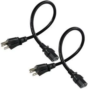 [2PACK] 3Prong AC Power Cable for Computer Monitor,1FT Black Monitor Power Cord, PC Power Supply Cable, Printer Power Cord, NEMA 5-15P to C13 Power Cord,13A,125V,16AWG for Monitor, Desktop, Scan