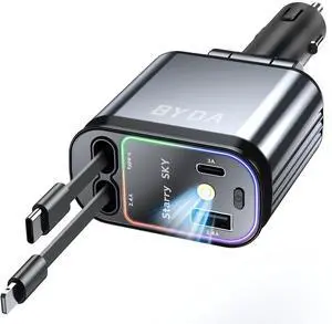 Portable Charger with Built in Cables, Slim 10000mAh Power Bank with USB C, External Battery Pack 5 Outputs 2 Inputs LED Display Compatible with iPhone/Android & More (Black)