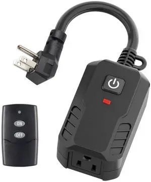 Outdoor Remote Control Outlet Plug Black,Indoor Wireless Outlet Switch Weatherproof Heavy Duty 15A 3-Prong 6-inch Cord 100Ft Range (Battery Included)
