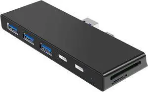USB 3.0 Hub 7 in 2 USB C Docking Station with 3 USB 3.0 USB C 60W PD LED SD/TF for Surface Pro