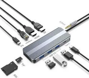 GXMRHWY 10 in 1 USB Type C HUB with to 8K HDMI DP +USB 3.0 Ports+SD/TF Card Reader, Multiport Adapter