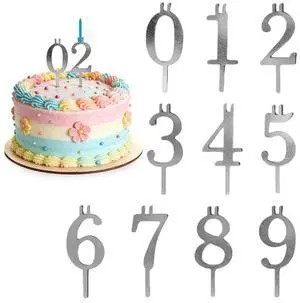 Type: Numbered Aluminum Birthday Cake Candle Holder Set - Reusable Metal Digital Happy Birthday Candle Holders For Cakes Topper Decoration, Forever Silver Candles Stand Party Accessories